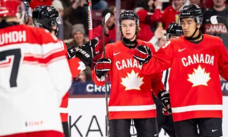 Gavin McKenna scored a hat trick as Canada finally flexed its muscles at the world junior championship in a 9-1 victory over...