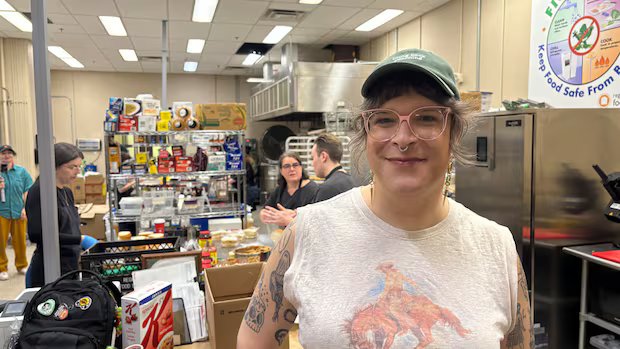 On Saturdays, Biner volunteers with The Matriarch’s Collective, which operates out of a kitchen at Regina’s Food Bank. (Janani Whitfield/CBC)