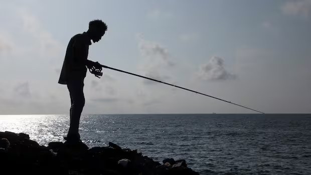 A man fishes in the waters of the Indian Ocean in the Hamarweyne district of Mogadishu in November. Somalia recently took steps to more strictly regulate fishing and recoup some of the millions of dollars it loses through illegal and unreported fishing. (Feisal Omar/Reuters)